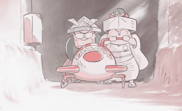 だって、まるで『ギブリーズ』(キャラクターデザインは、同じくいしいひさいち)みたいな絵柄で、映像にも話にも余白の多いこんな映画を観客がこぞって観にくるとは思えないもの。