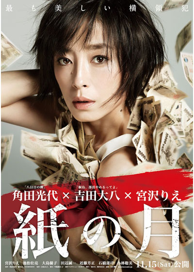 吉田大八監督、宮沢りえ、池松壮亮、小林聡美、大島優子、田辺誠一、近藤芳正、平祐奈、石橋蓮司出演の『紙の月』。2014年作品。PG12。