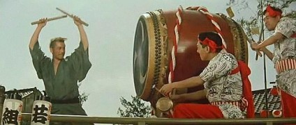 三船敏郎によるバチさばきは見事で、時々バチをクルクルっとドラムスティックみたいに廻して力強く打ちつける。かっこいいよなぁ。