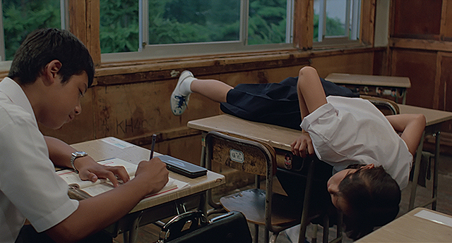 三上祐一演じる恭一の、しっかりカノジョもいるんだけど、何か他の男子生徒たちとは微妙に距離を置いていて引いた目でものを見ているような主人公、ってあの頃いろんな作品で見たような気がする。ああいう態度、スタンスがかっこいいと思われていたんだな。でも、実際にモテてたのは健のようなスポーツマンタイプの奴らだったけど。