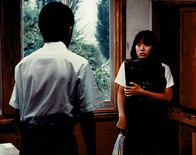 相米慎二監督、三上祐一(恭一)、工藤夕貴(理恵)、大西結花(美智子)、紅林茂(健)、松永敏行(明)、会沢朋子(泰子)、天童龍子(由美)、渕崎ゆり子(みどり)、小林かおり(順子)、尾美としのり(小林)、石井富子(順子の母)、佐藤充(順子の叔父)、伊達三郎(用務員)、きたむらあきこ(保健医)、鶴見辰吾(恭一の兄)、寺田農(健の祖父)、三浦友和(教師・梅宮)ほか出演の『台風クラブ 4Kレストア版』。1985年作品。