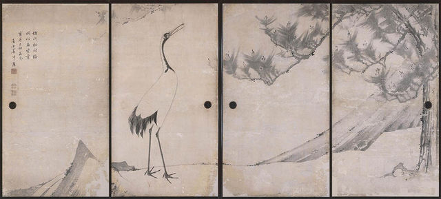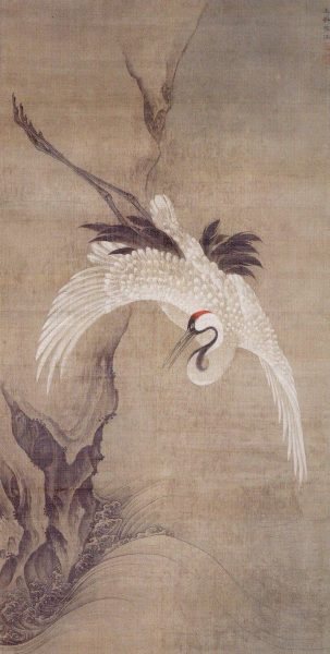 伊藤若冲 白鶴図・浪に鶴